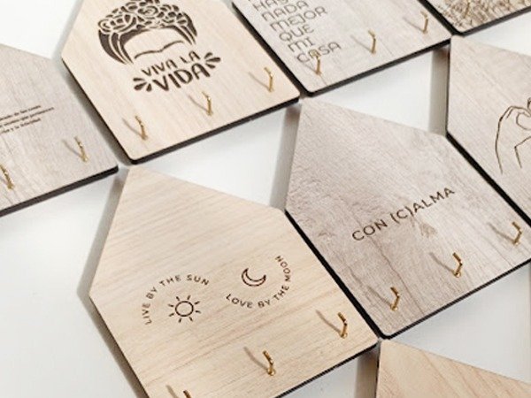 🏭 Realizado en MDF laminado, con 3 Ganchitos Dorados y Cinta Bifaz 3M
